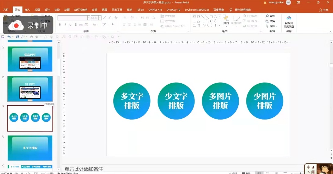 会议伊始,王俊凯为大家分享了日常PPT的版式设计与排版技巧。基于PPT这款软件的基本功能以及日常办公的需求,他围绕“多文字排版”“少文字排版”“多图片排版”“少图片排版”四个方面,循序渐进地向大家分享了如何呈现既清晰又美观的画面技巧。鲜明的实例让讲解变得一目了然,同学们也都收获颇丰。